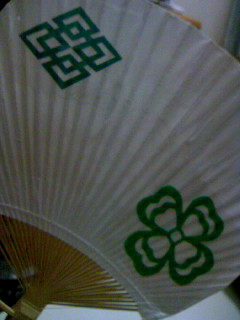 この寒い時季に、うちわを作りました。ばかじゃないか。うちわを作ったといっても、緑の模様を貼っただけです。作ったなんて大きなことはひとつも言えやしない。
