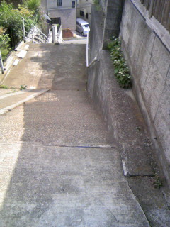 家から見える鉄塔まで歩くことにしました。けっこう距離ありました。坂を上ったと思ったら階段まで上りました。どんだけ高いところにあるんだろう、と思って歩き続けること15分ほど。